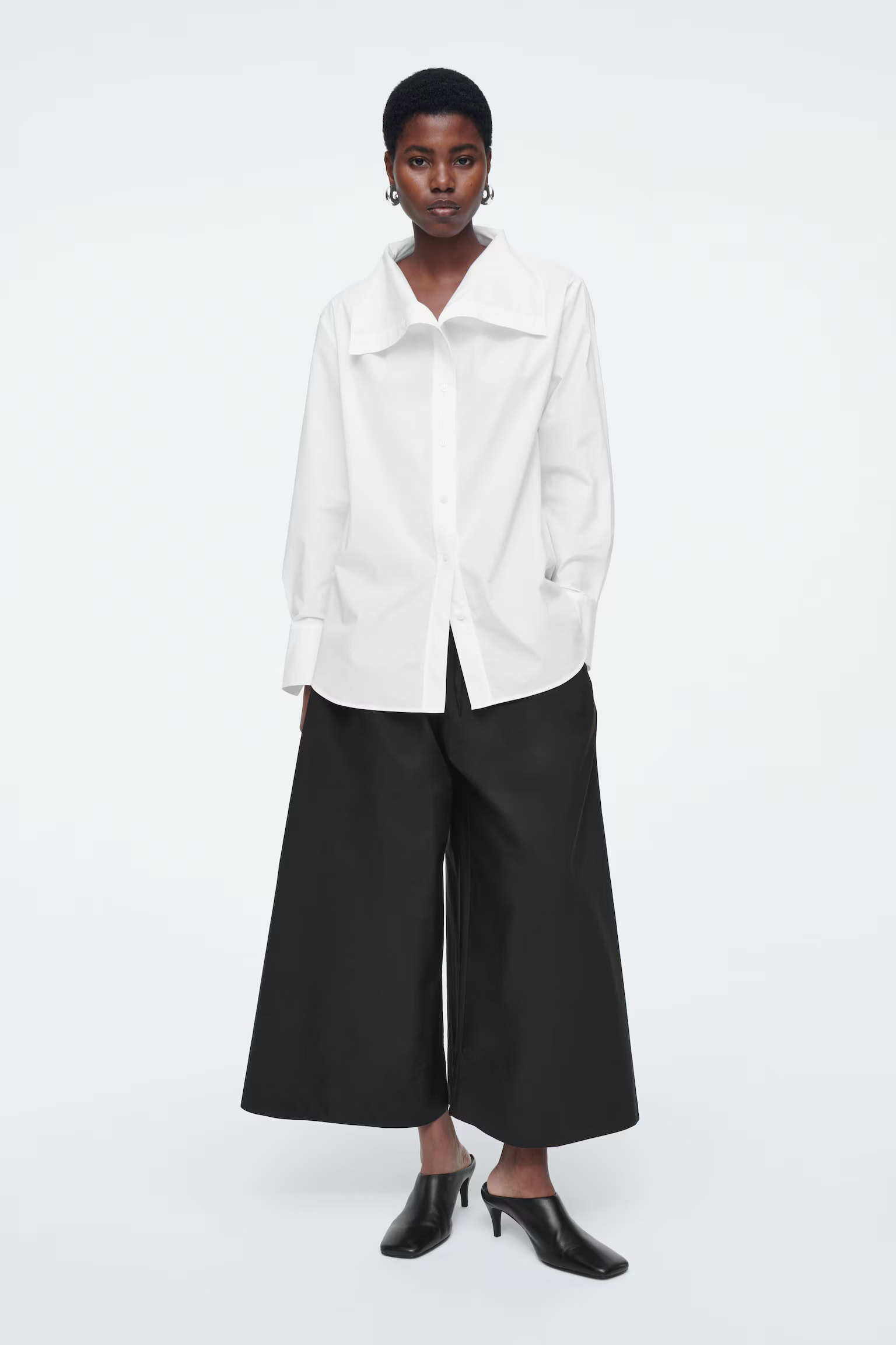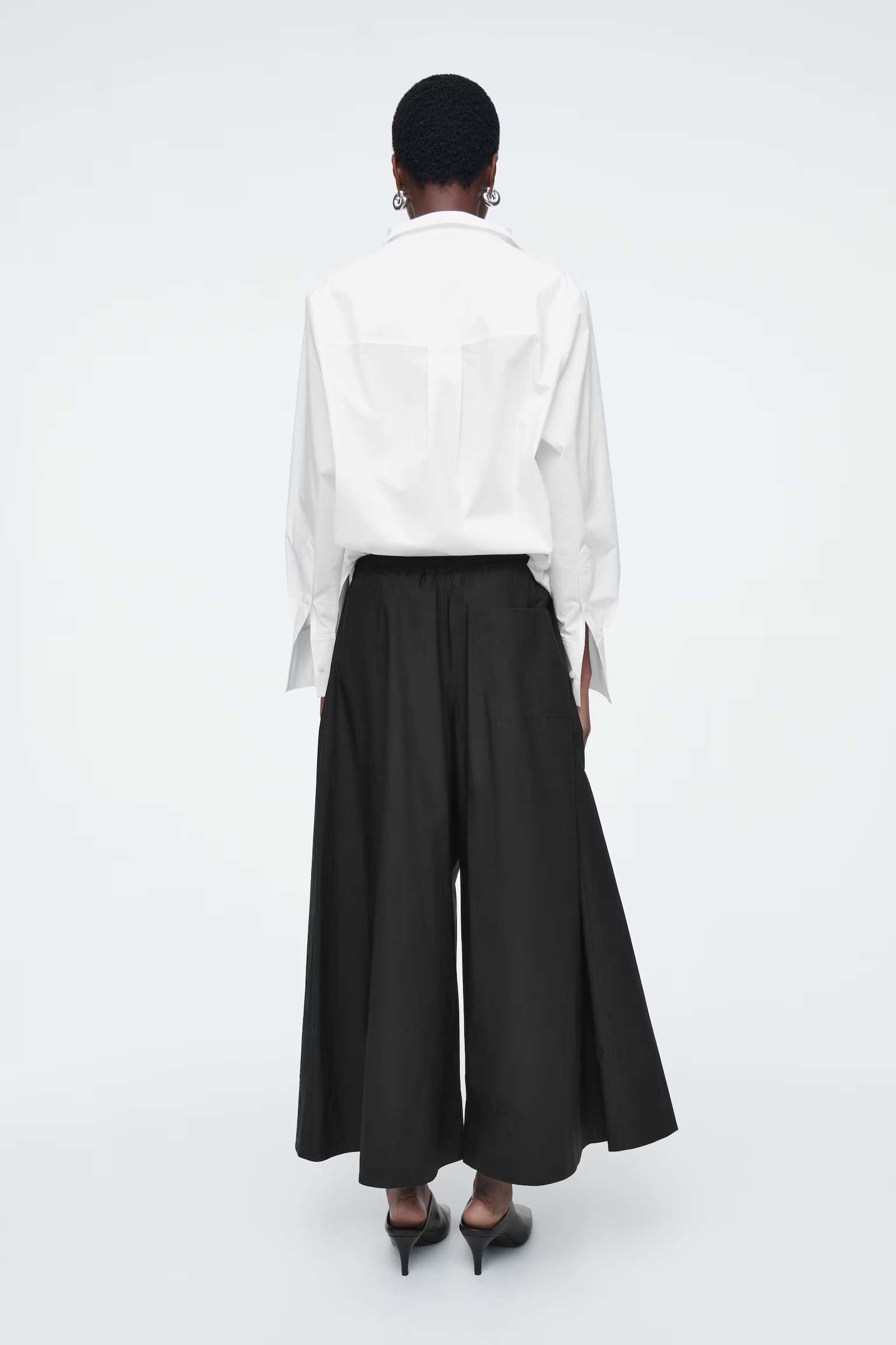 Артикул:1223518005 Состав:100% хлопок Цвет черный. Кюлоты укороченного кроя. Внутренняя длина штанины для размера EU 36 составляет 58,1 см / Модель носит размер EU 36