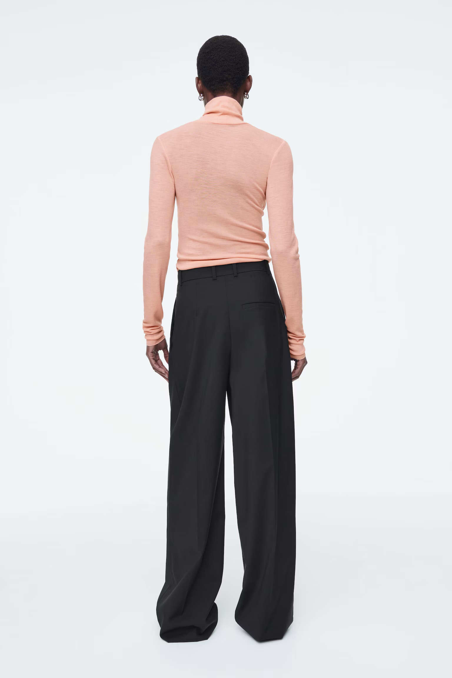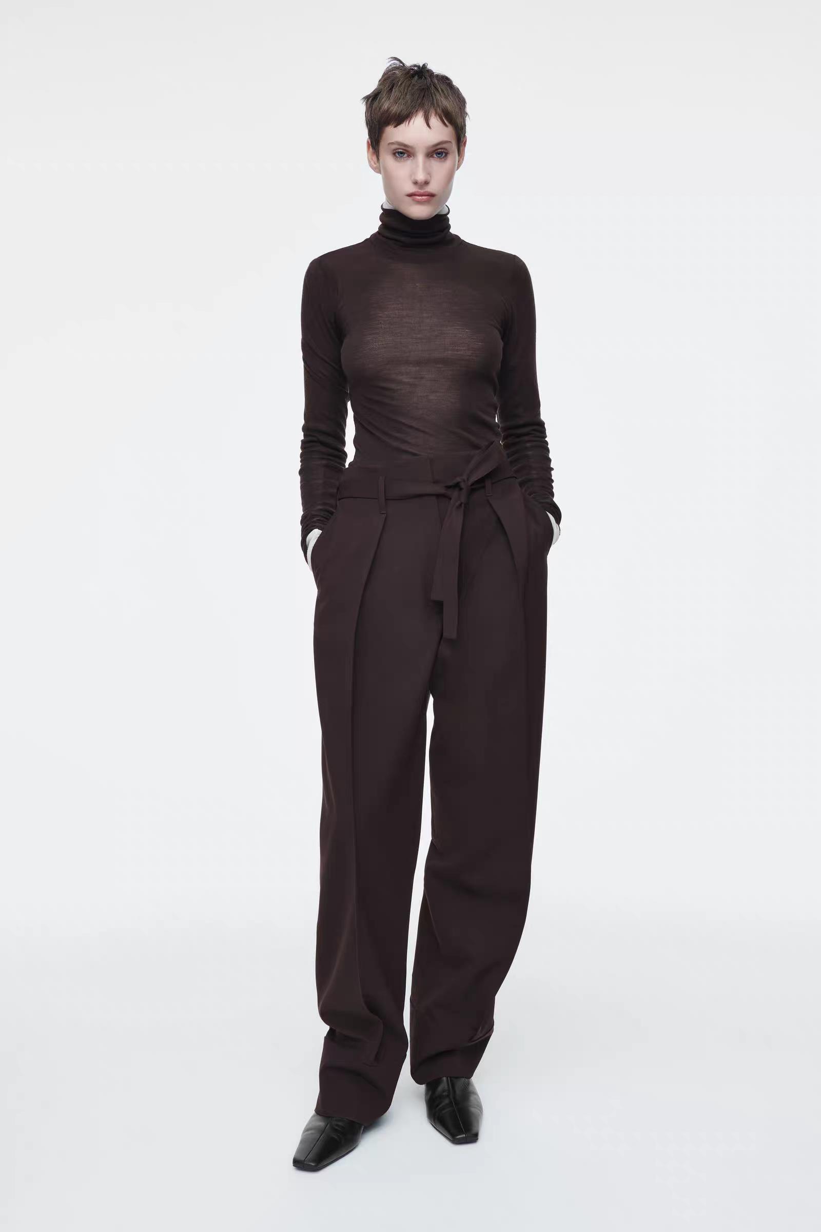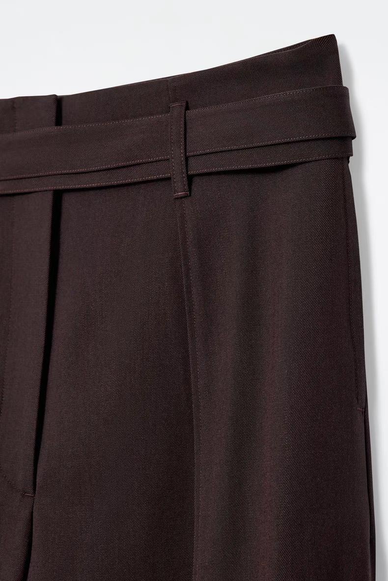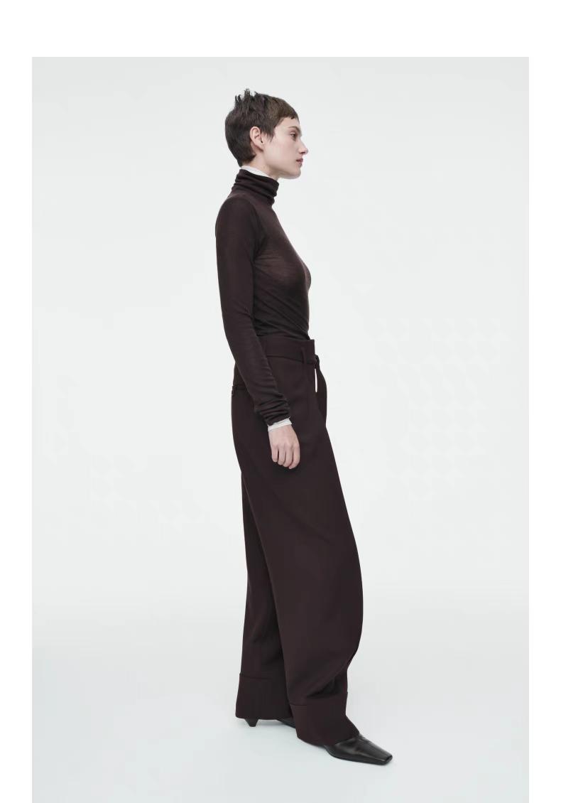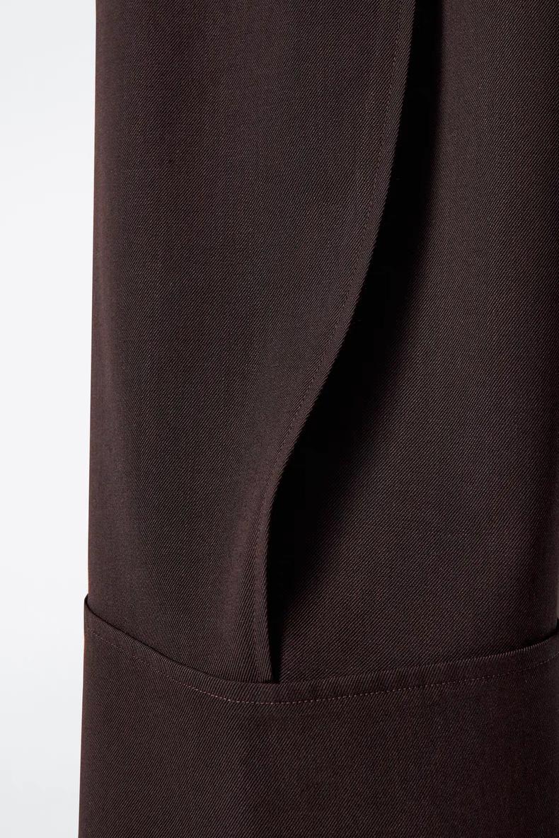 Артикул:1271127001 Состав:48% вискоза, 37% вискоза ECOVERO™, 15% шерсть Эти брюки изготовлены из струящегося материала с вискозой и добавлением шерсти. Внутренняя длина ноги для размера 36 составляет 73,5 см / Модель носит размер EU 36
