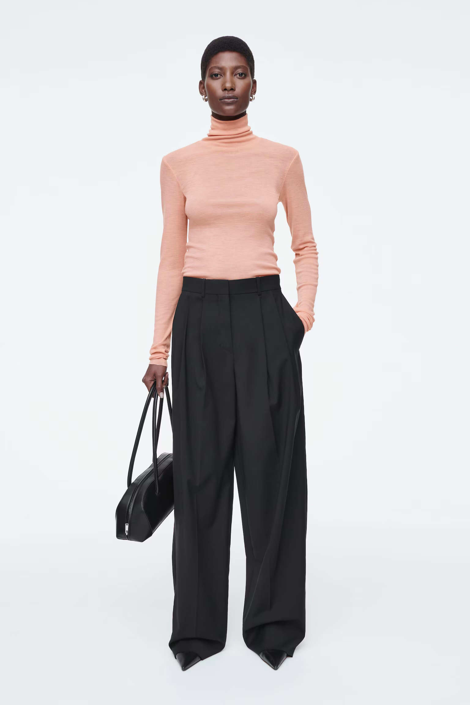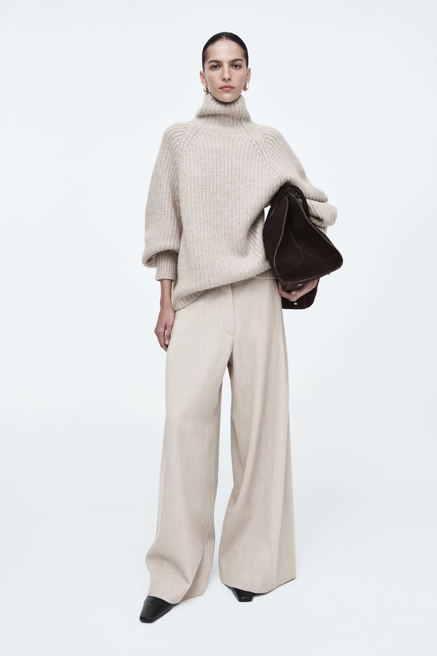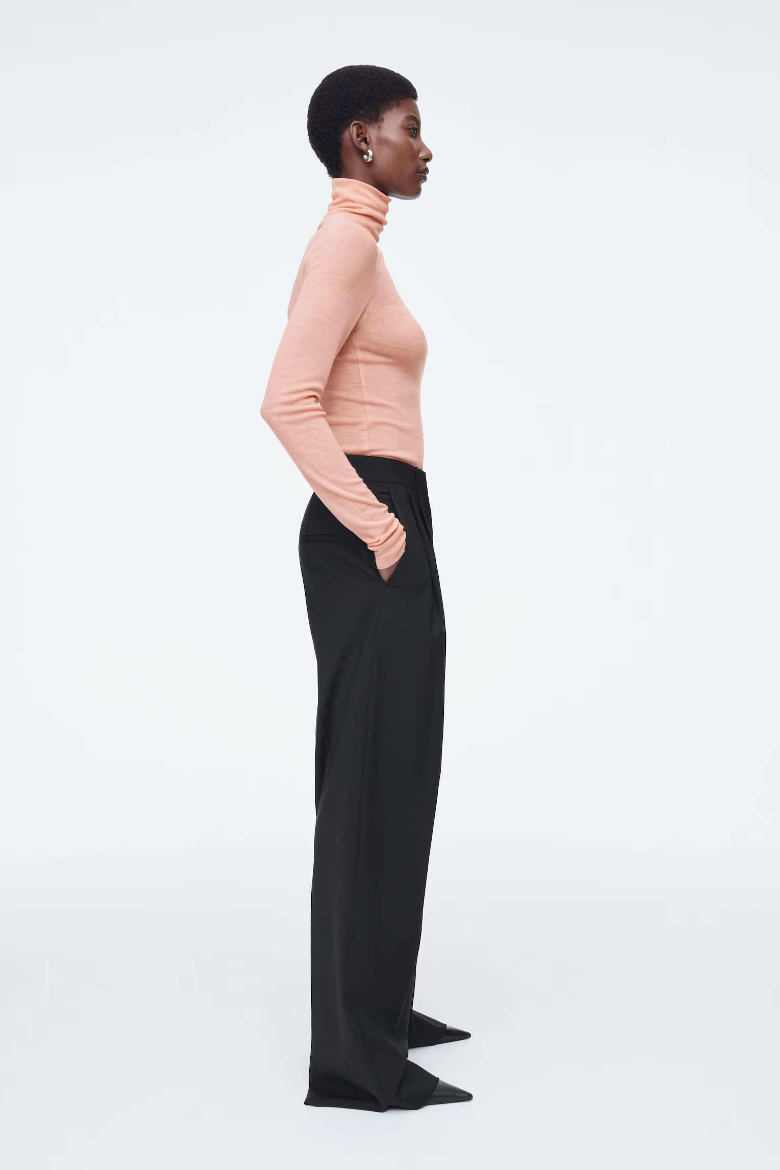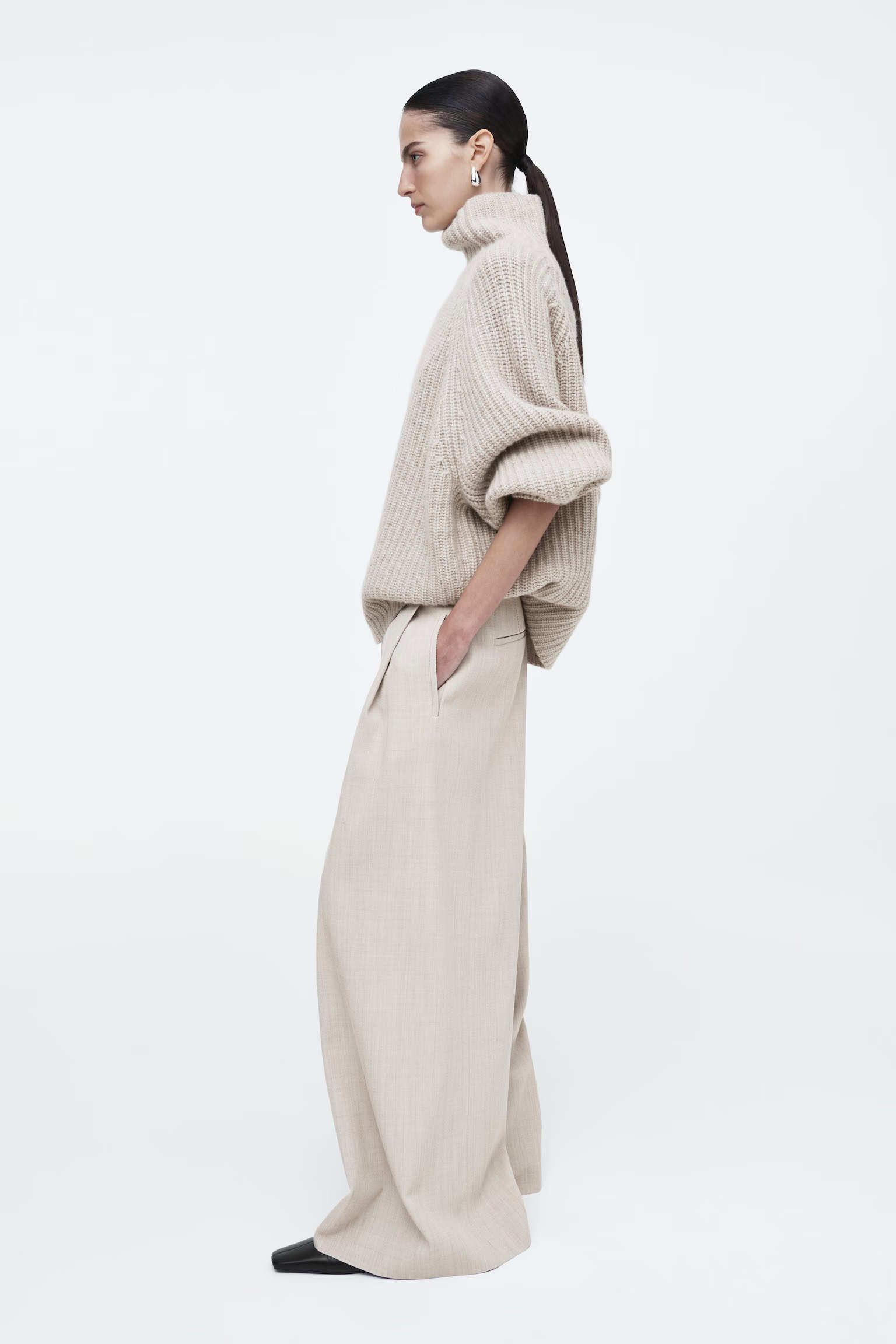 Артикул:1271127001 Состав:48% вискоза, 37% вискоза ECOVERO™, 15% шерсть Эти брюки изготовлены из струящегося материала с вискозой и добавлением шерсти. Внутренняя длина ноги для размера 36 составляет 73,5 см / Модель носит размер EU 36