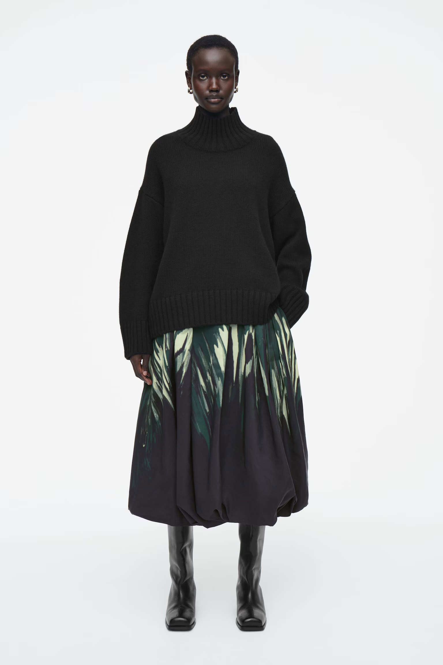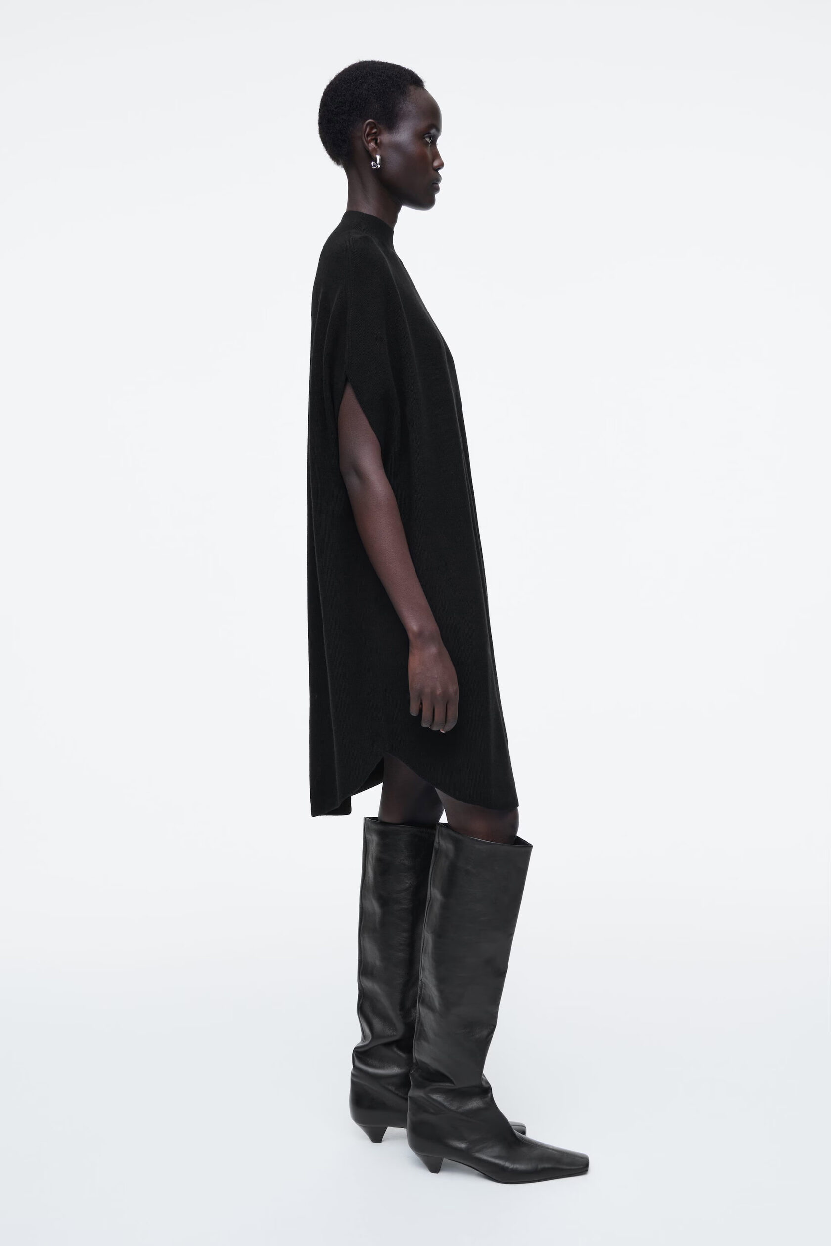 Платье кокон Артикул:1265009001 Это современное платье в универсальном черном цвете выполнено из чистой шерсти. Оно имеет изогнутую форму и высокий вырез. Надевайте сапоги длиной до колена или надевайте брюки, чтобы создать современные многослойные образы. -Свободный фасон Длина для размера S составляет 90,5 см / Модель одела размер S Состав: 100% шерсть