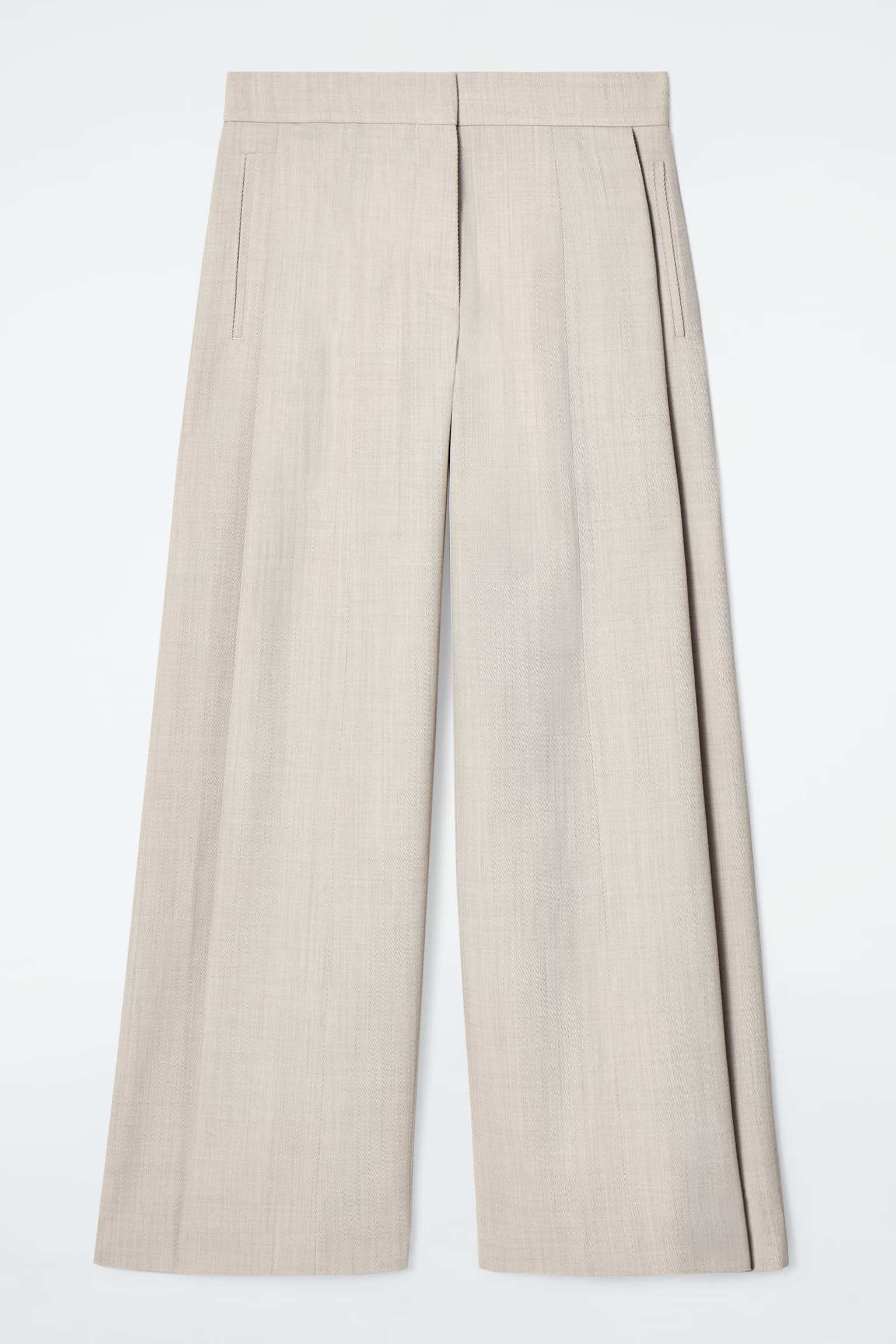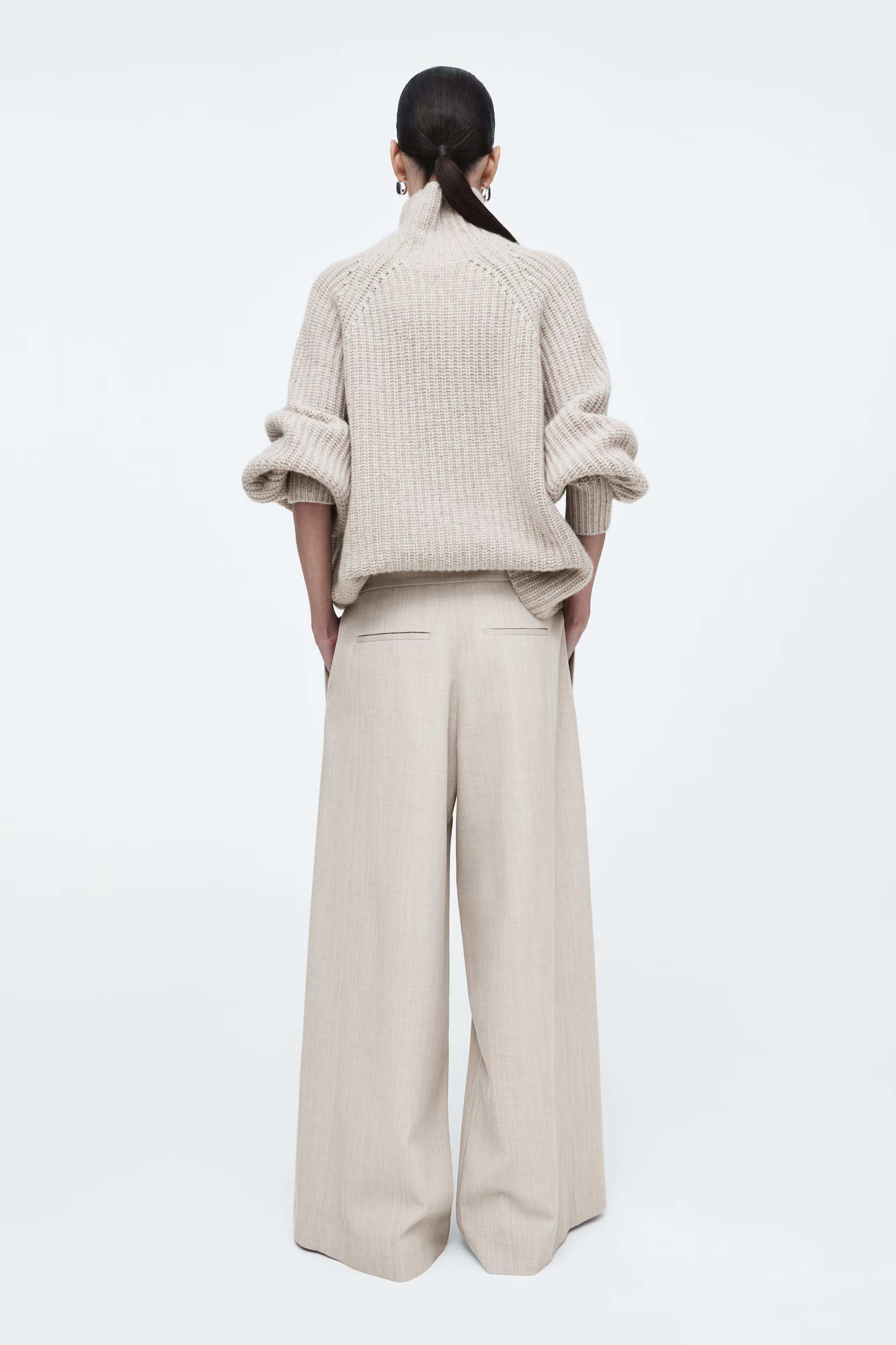 Артикул:1242831002 Состав:53% полиэстер, 47% шерсть, подкладка:100% хлопок Эти брюки светлого цвета имеют широкие штанины со складками и простую регулируемую талию, которая позволяет идеально прилегать по фигуре. -Застежка-молния на крючке и молнии" Внутренняя длина ноги для размера EU36 составляет 74,3 см / Модель носит размер EU 36
