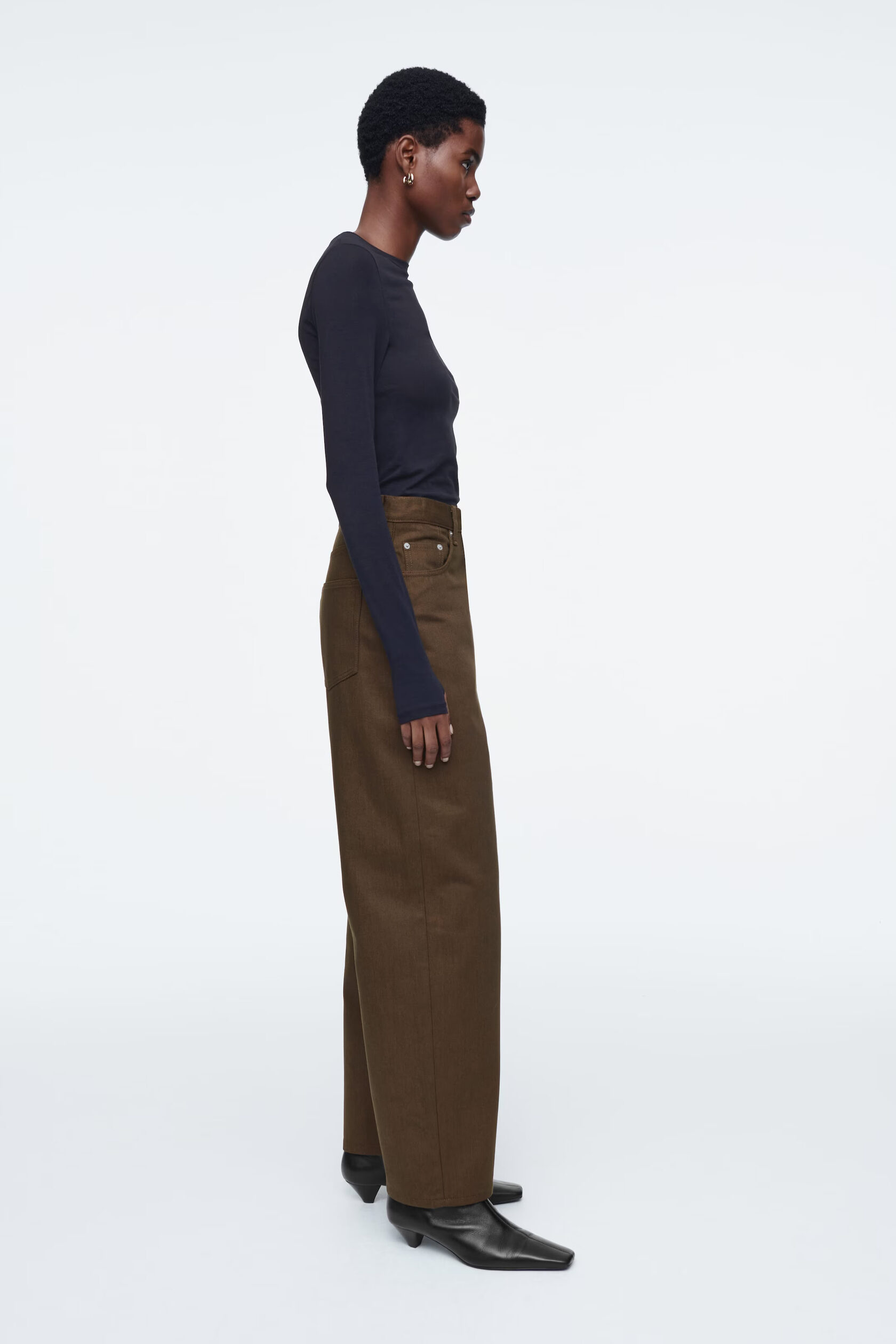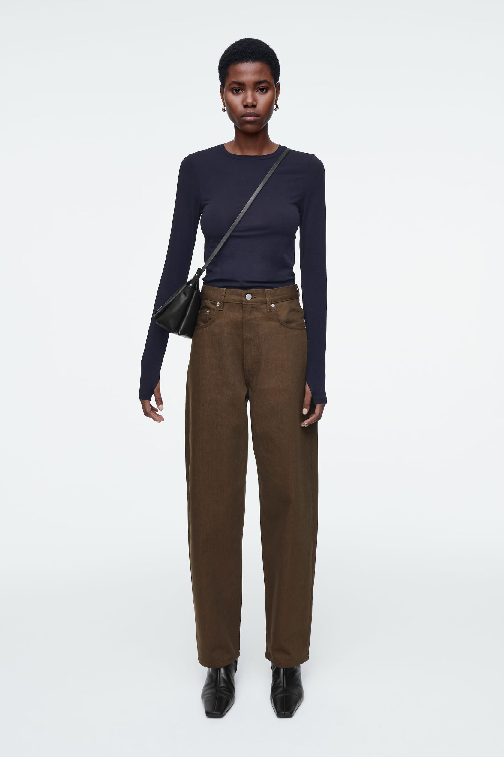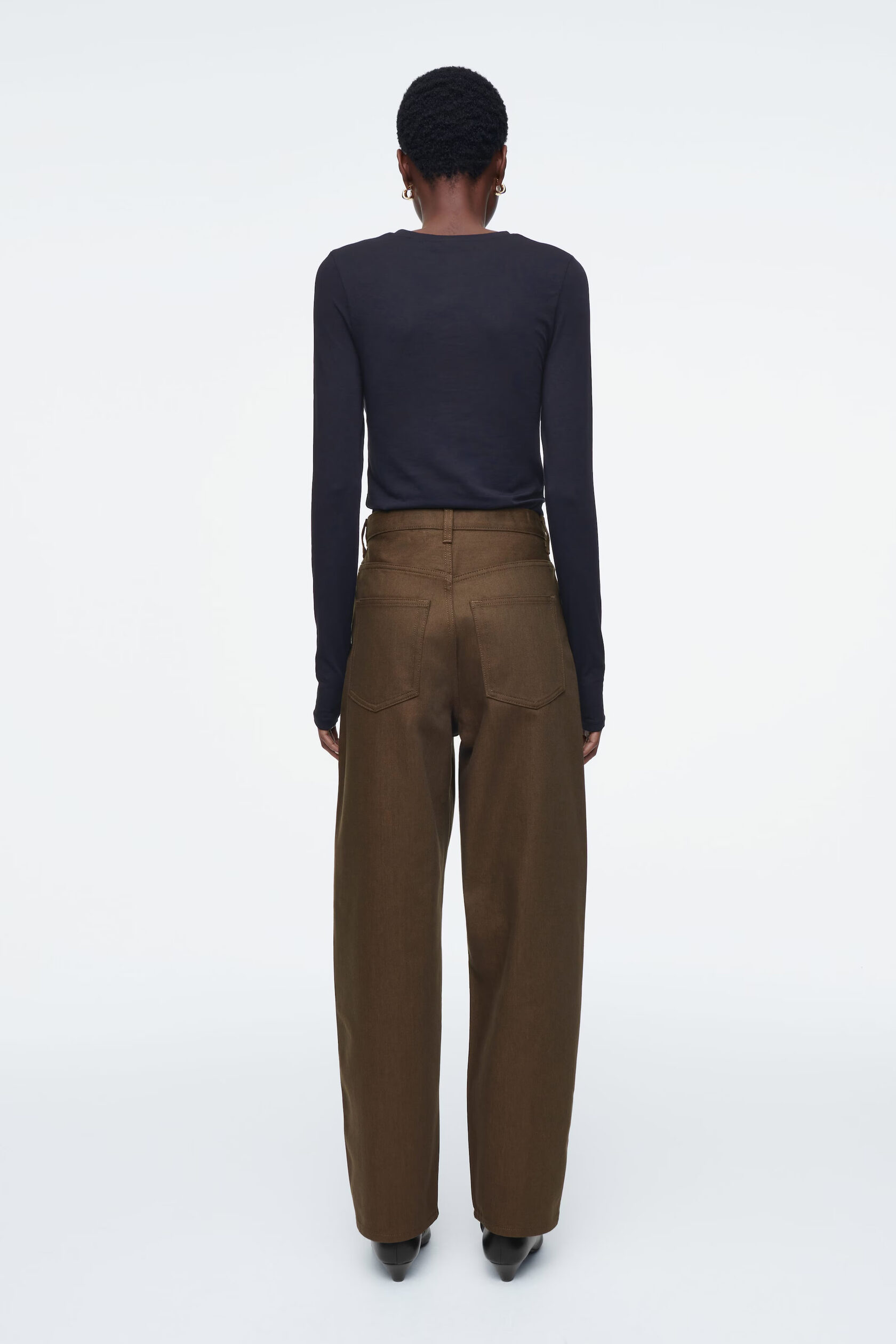 ДЖИНСЫ BAY ТИПА BARREL Артикул:1257004002 Джинсы имеют характерную изогнутую форму и штанины-бочки. Они сделаны из денима глубокого шоколадного цвета. Носите их с футболками, рубашками и трикотажными изделиями. -Классический крой, средняя талия, штанины бочки полной длины -Застежка на пуговицу и молнию Внутренняя длина штанины для размера 28 составляет 78 см / Модель носит размер 28