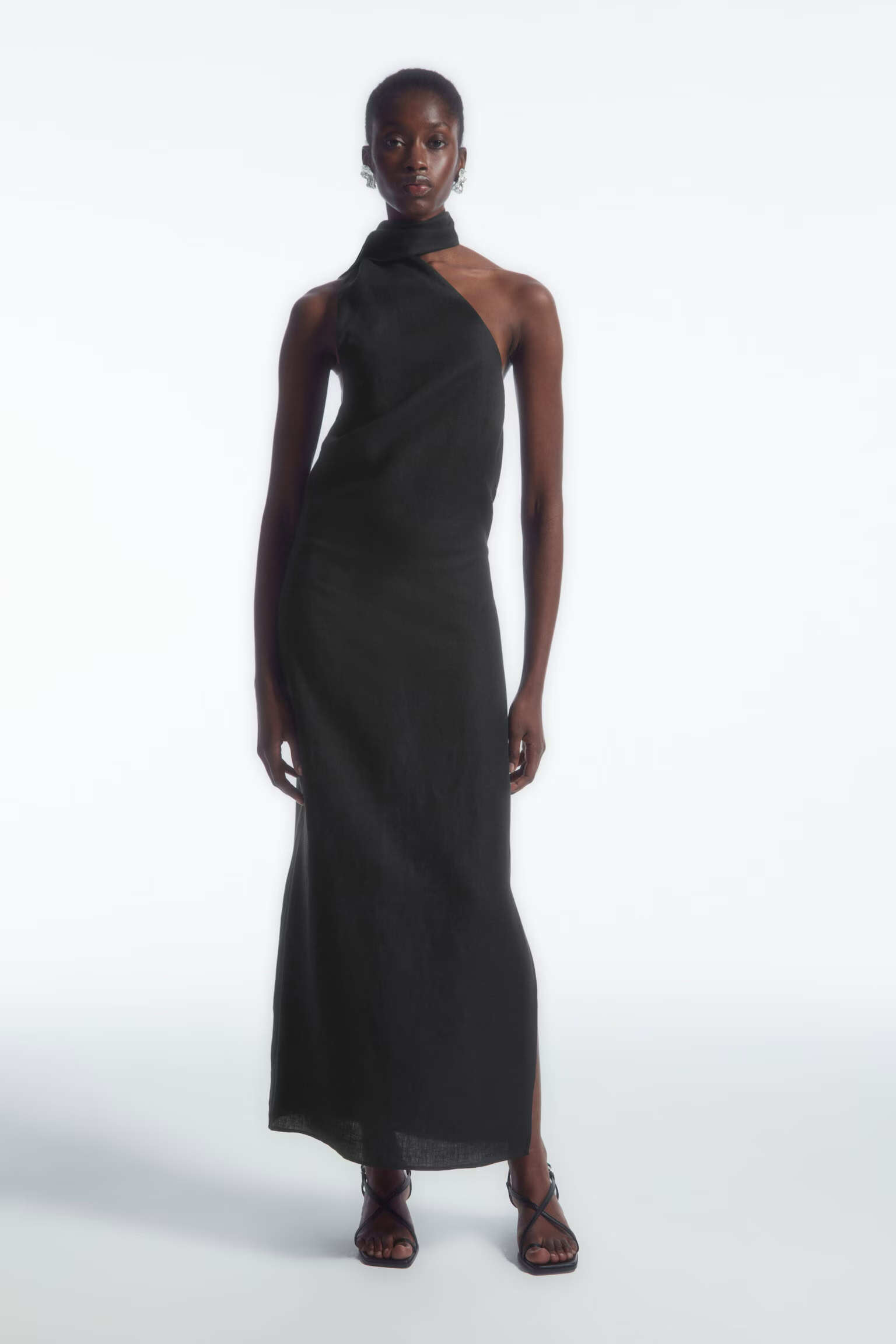 Артикул:1221713001 Состав:100% лен льняное платье с асимметричным вырезом. Длина по спинке для размера EU 36 составляет 102 см. На модели размер EU 36.