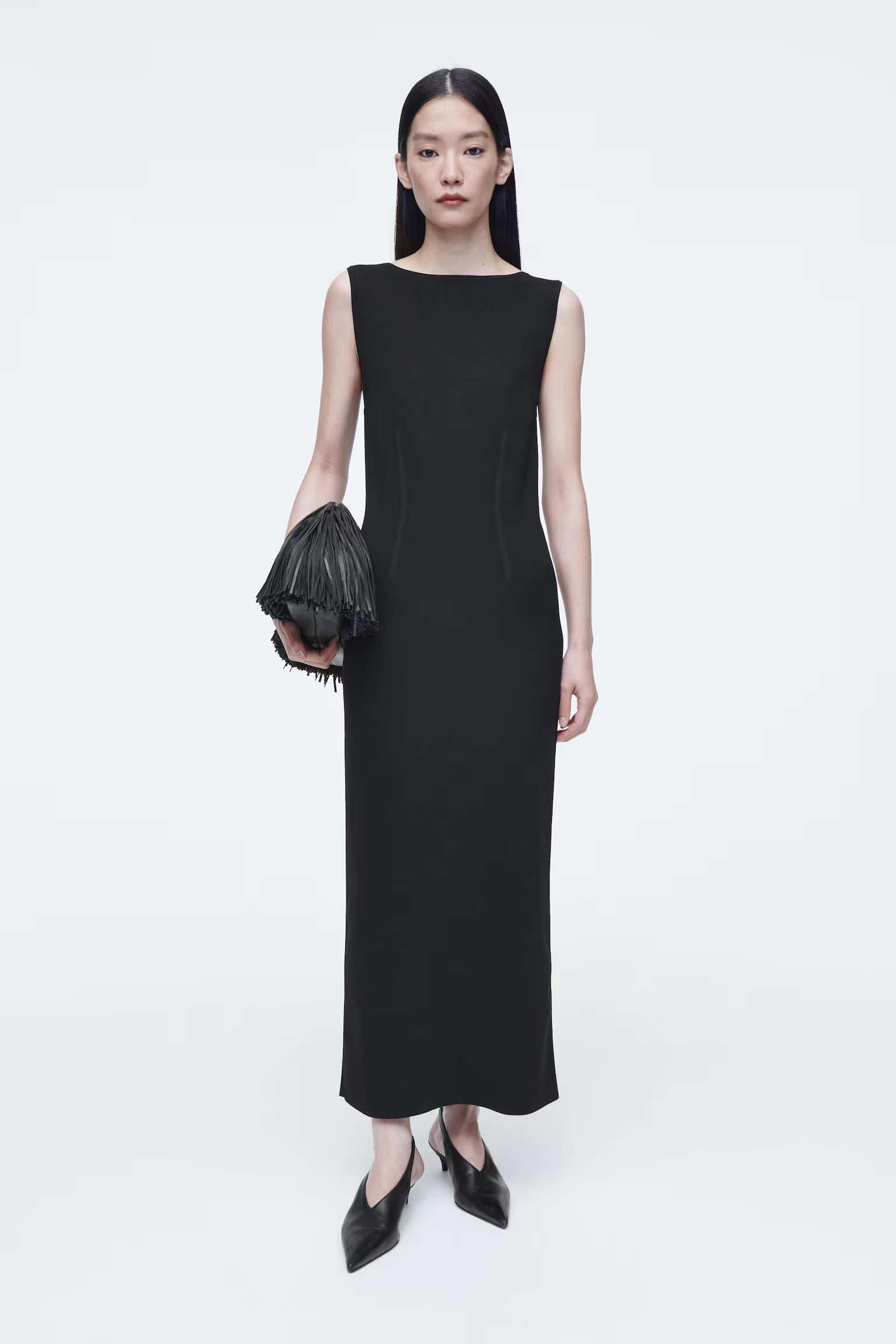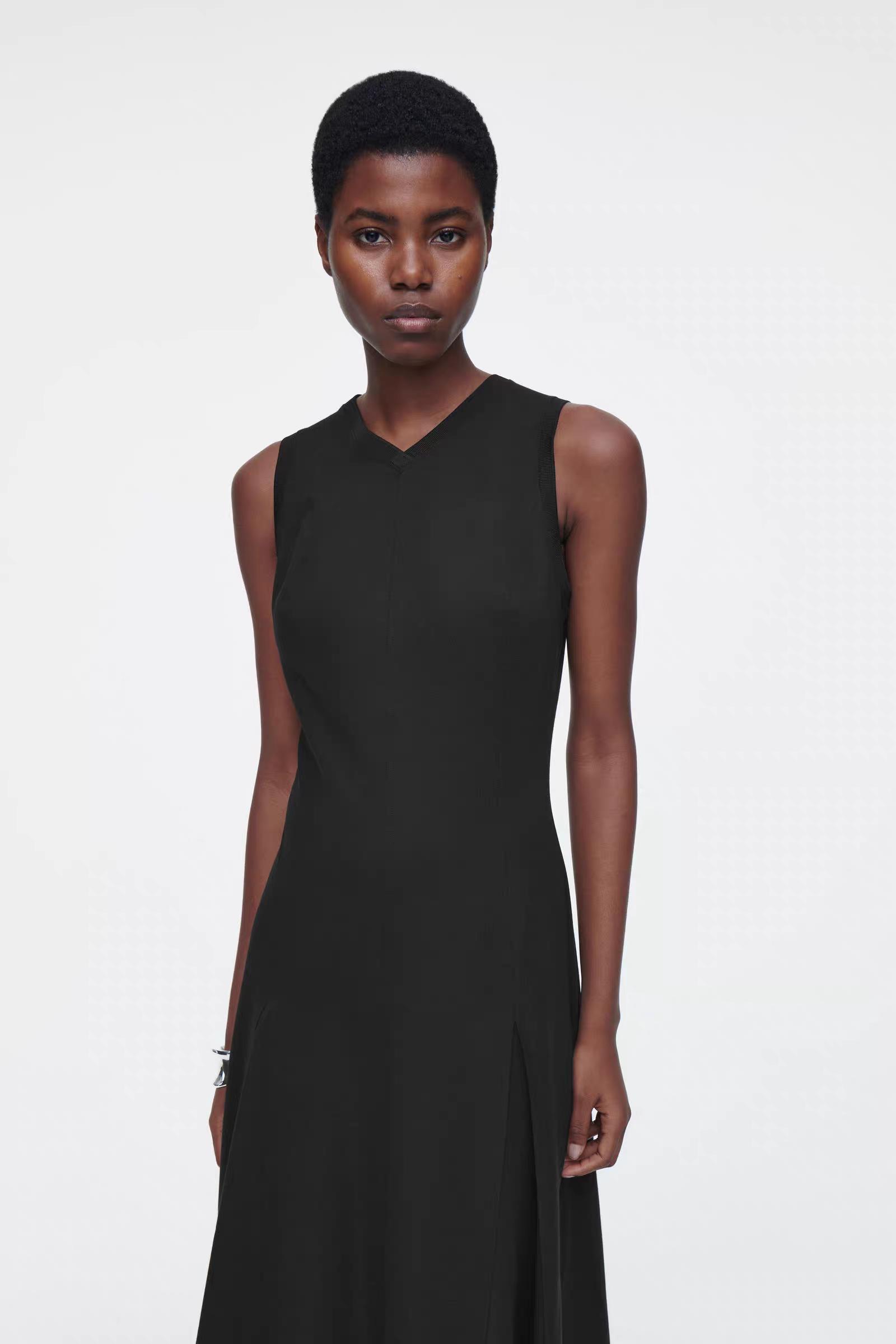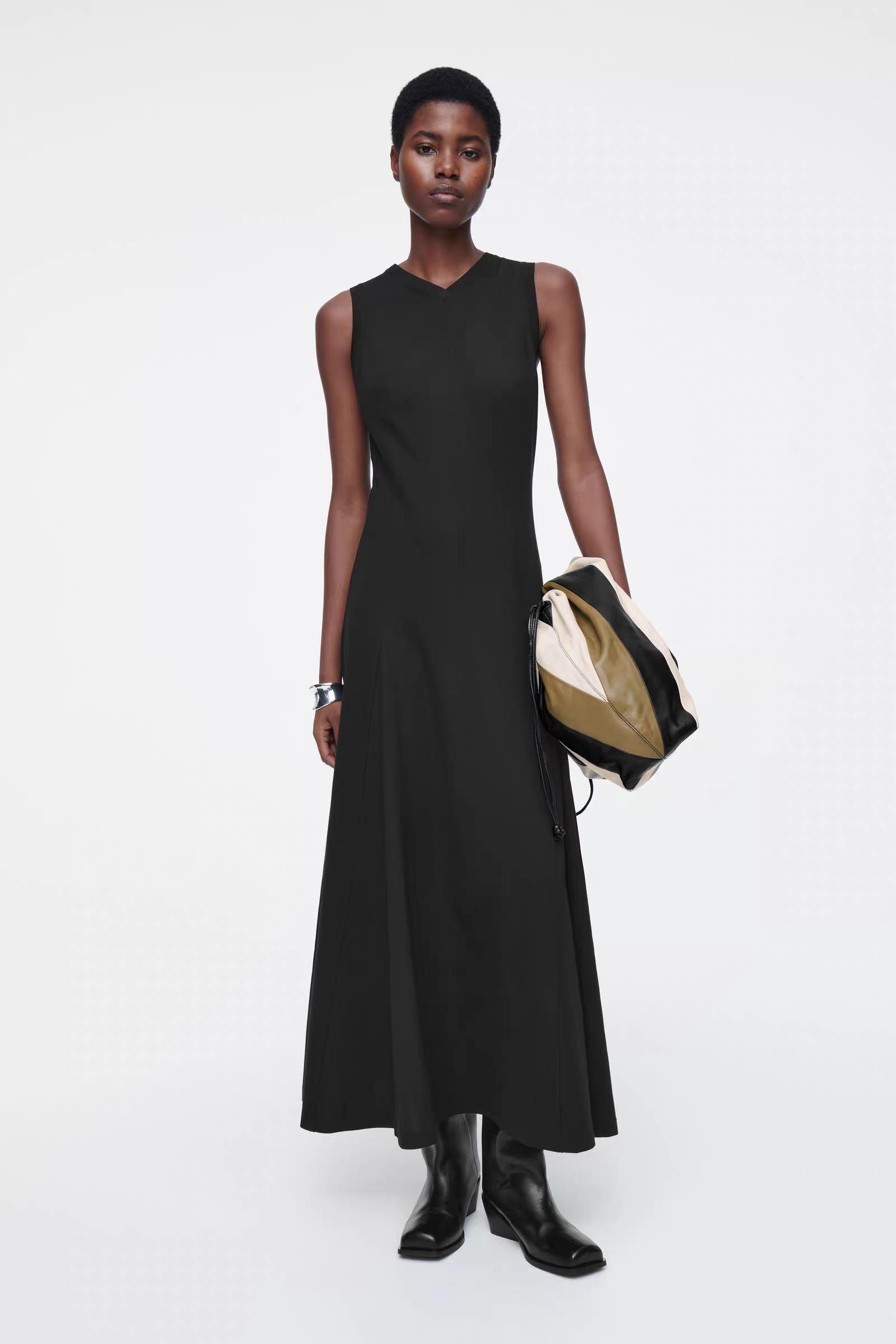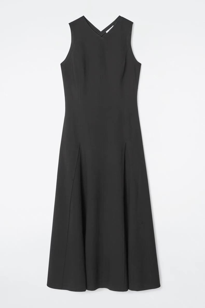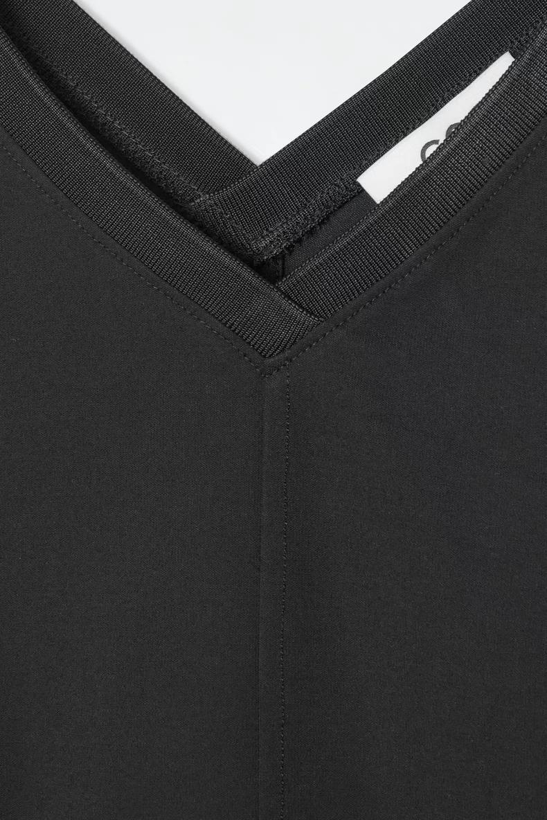 Артикул:1231626001 Это платье макси черного цвета выполнено из мягкого трикотажа с хлопком. V-образный вырез и складки в расширенной нижней части. Узкий фасон Состав: 59% хлопок, 25% полиэстер, 16% эластан. Без отделки / Машинная стирка Длина сзади для размера S составляет 125 см / Модель одет размер S