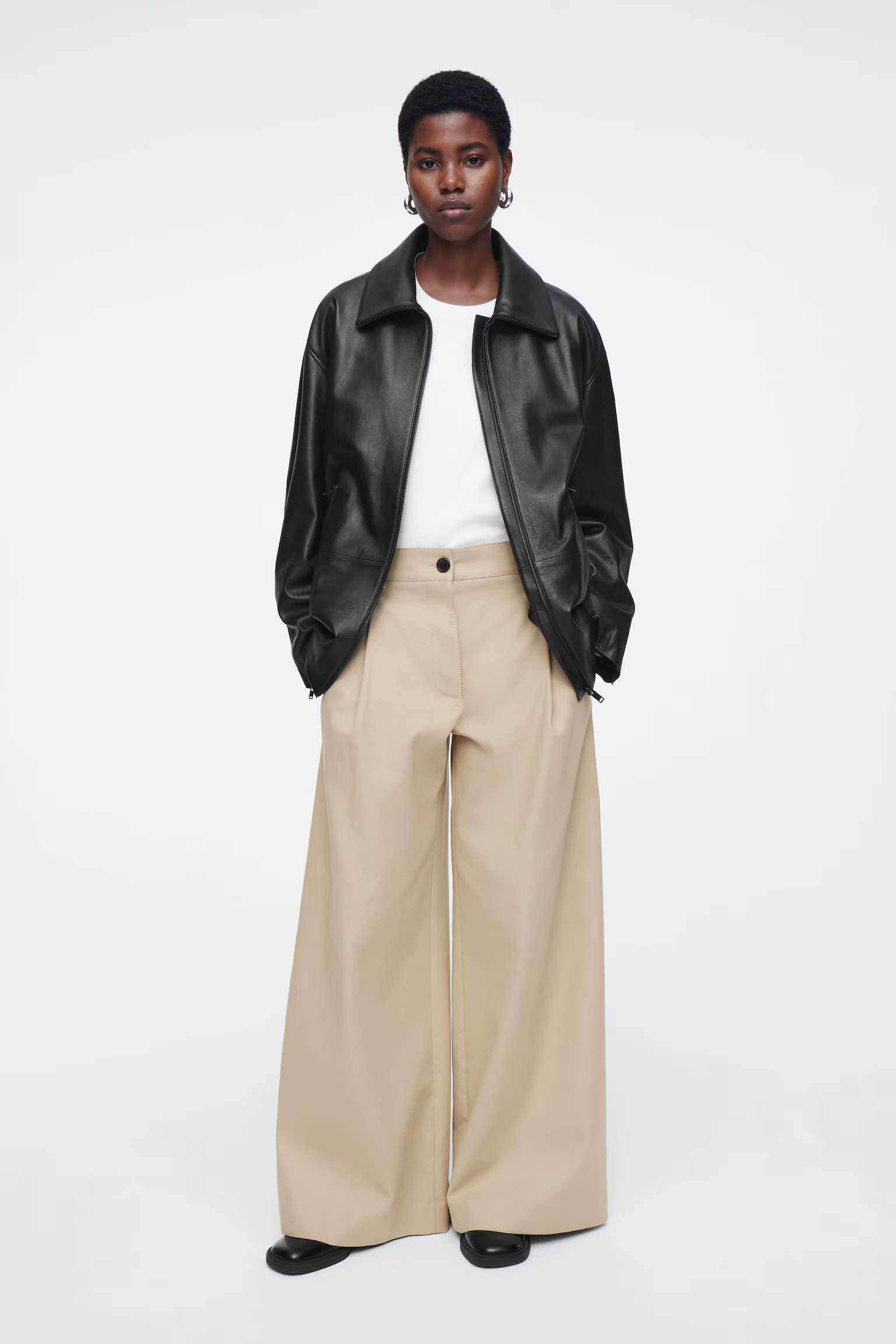 Артикул:1242895003 Эта куртка сочетает в себе комфорт и изысканность. Изделие изготовлено из структурированного хлопкового полотна и имеет сверхмягкий кожаный воротник, контрастирующий с материалом внутренний шнурок для регулировки по фигуре, а также накладные карманы, прорезные карманы, регулируемые манжеты. Стиль оверсайз, Застежка-молния и кнопки Внешний материал и подкладка: 100% хлопок. Длина по спинке для размера EU 36 составляет 82,7 см. На модели размер EU 36."